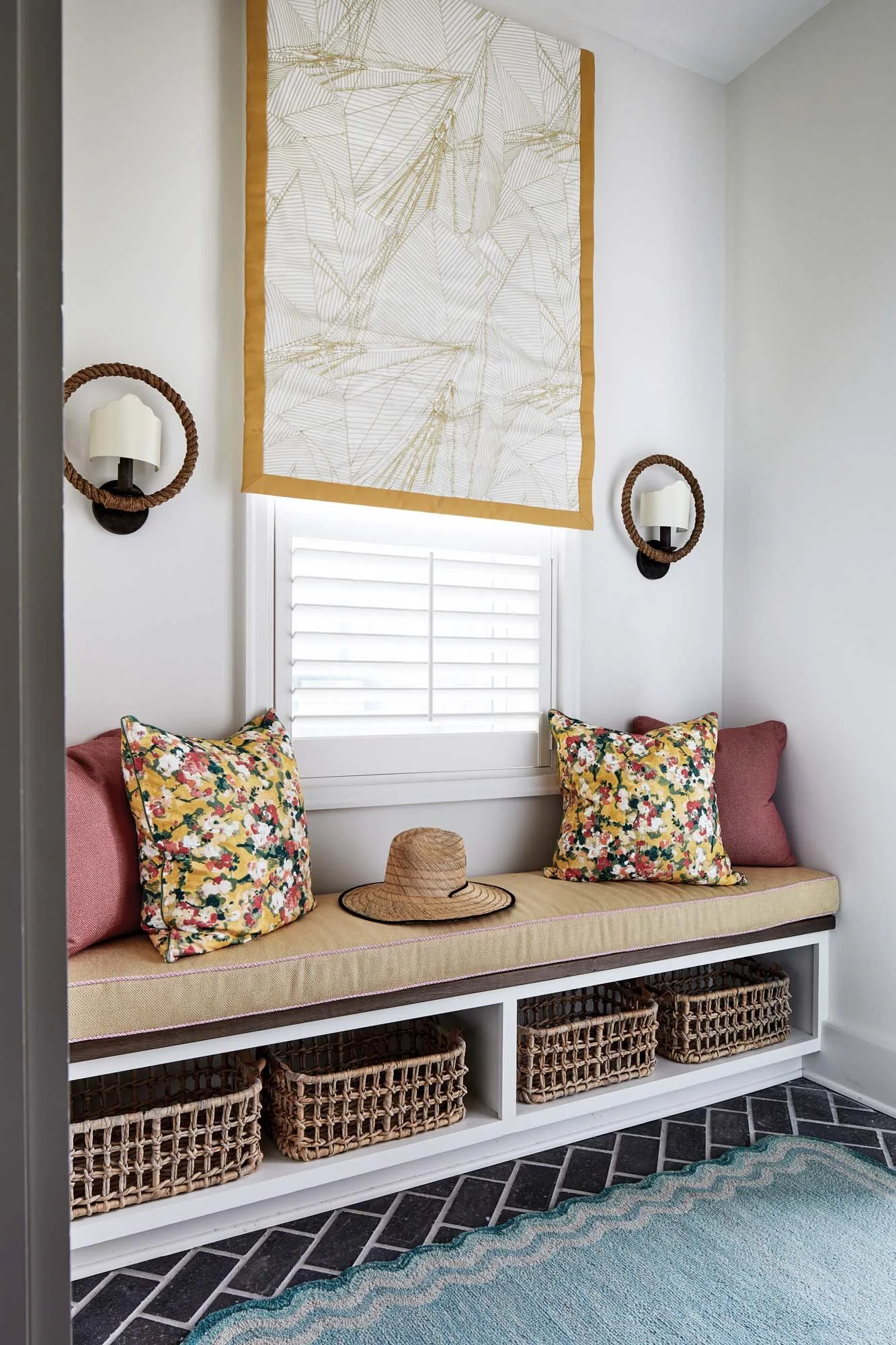 A custom dining table welcomes extended family, while bunkrooms and reading nooks anticipate visits from future grandchildren. Every detail is thoughtfully layered—from woven elements repeated across lighting, wallcoverings, and rugs, to custom upholstery and millwork that connect each space through tactile storytelling.